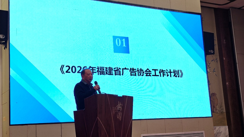 迎新年会上,福建省广告协会第八次理事会召开。省广协会长陈义敏、荣誉会长黄应寿分别宣读《福建省广告协会2025年工作总结和2026年工作计划》,回顾了协会2025年工作成果,全面部署2026年重点工作,进一步强调,协会将率领全省广告界在服务社会进步、助力地方经济建设中奉献智慧和力量。工作报告尤其提到,努力提高广告行业运用智能化、数字化、科技化水平;加强行业品牌建设,提高广告新质生产力;积极推动“闽牌广告出海”等新年计划,清晰勾勒出福建省广告业态的发展方向,让参会师生对本土广告行业的发展生态有了更深入全面的了解。